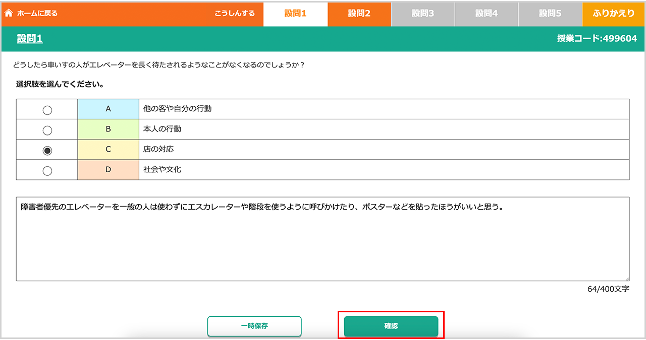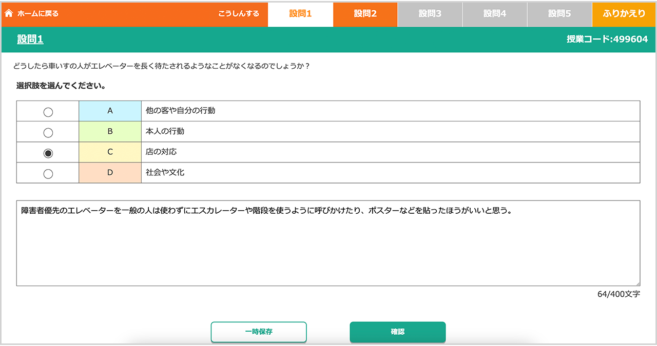 児童生徒が授業に参加したら、設問を提示しましょう。