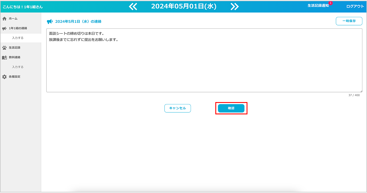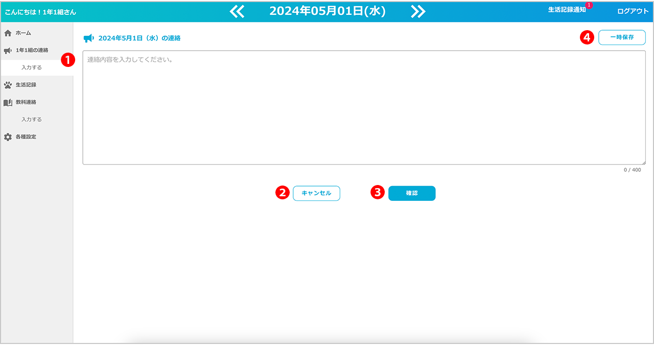 生徒に伝えたい連絡事項を入力します。