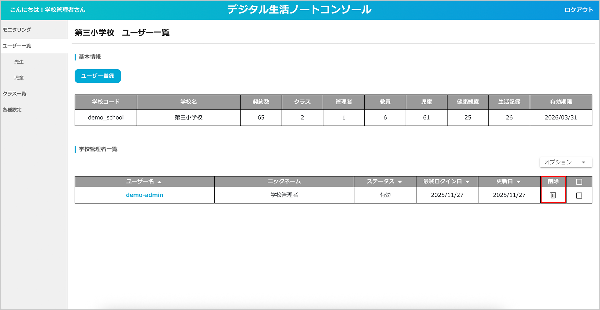 3.学校管理者情報を削除する
