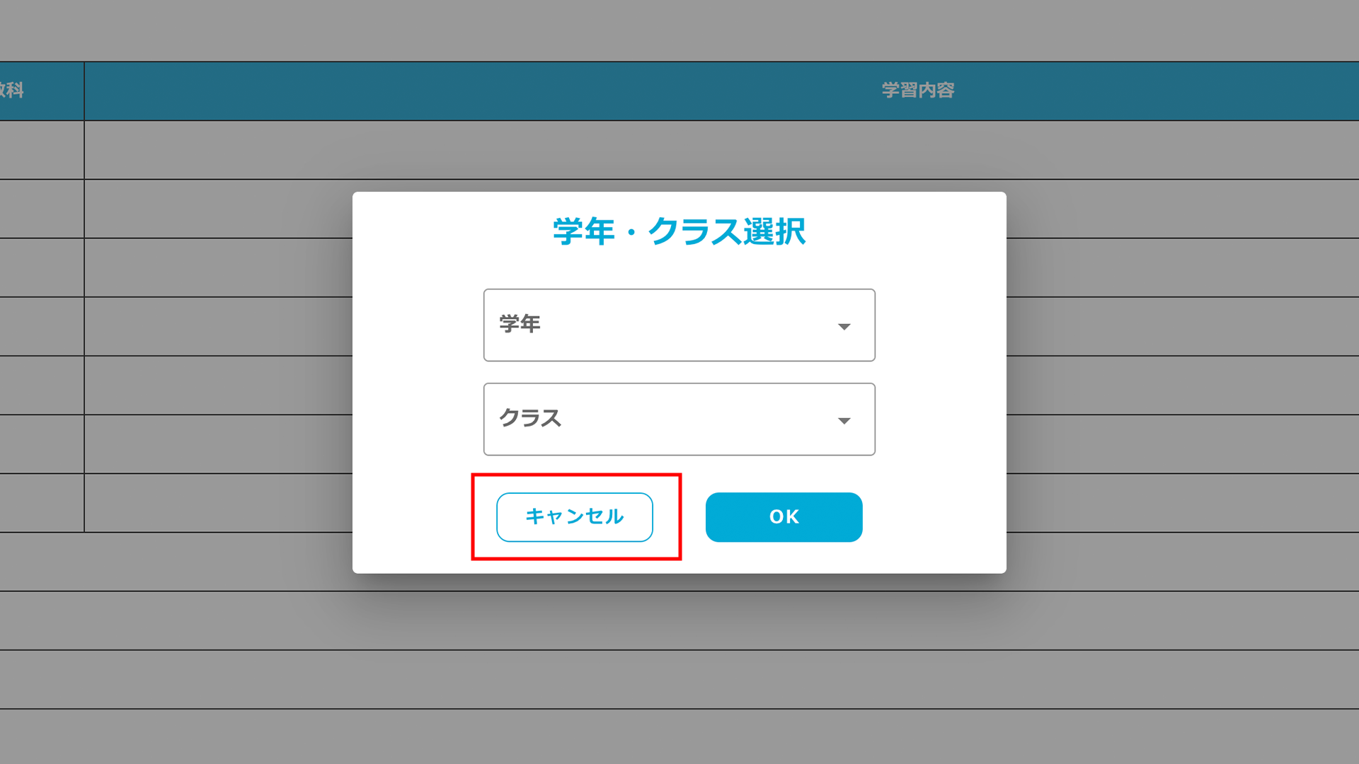 先生の表示クラス選択画面に、「キャンセル」ボタンを追加しました。