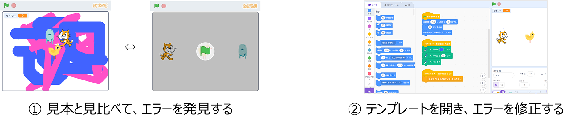 Scratchは自由度が高い一方で、初めて扱う子どもたちにとっては「何からはじめればいいかわからない」「白い画面に戸惑ってしまう」という課題があります。